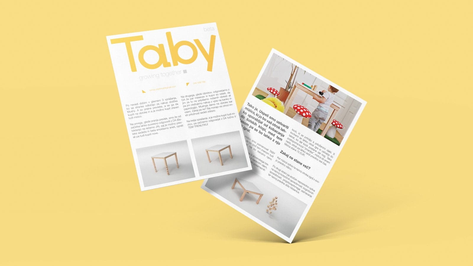 Slika: prodajni letak za povečanje prodaje v času pohištvenega sejma v Ljubljani, projekt Taby.